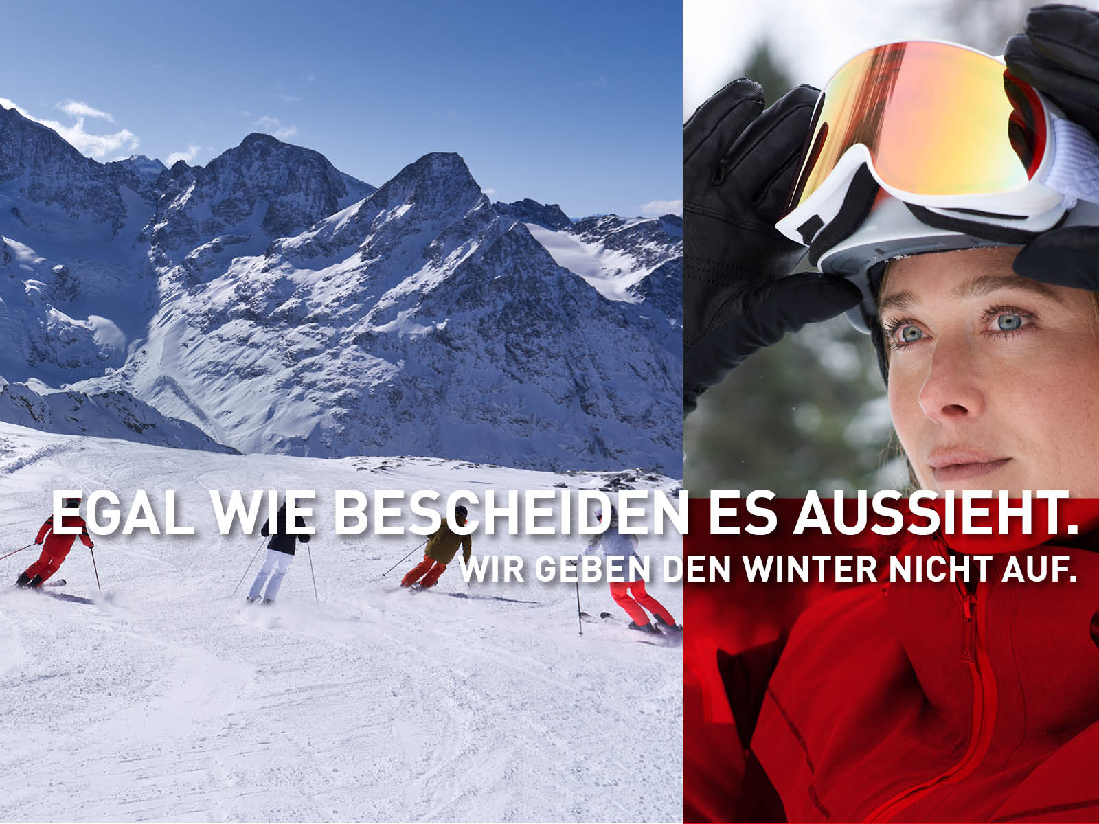 Wir garantieren dir: Rückgaberecht für ungebrauchte Ski bis zum 10. Februar, wenn drei der angeführten Skigebiete bis zum 7. Februar nicht mindestens 3 Wochen Skibetrieb haben: Silvretta Montafon, Golm, Gargellen, Brand, Sonnenkopf, Arlberg, Diedamskopf, Damüls/Mellau, Laterns